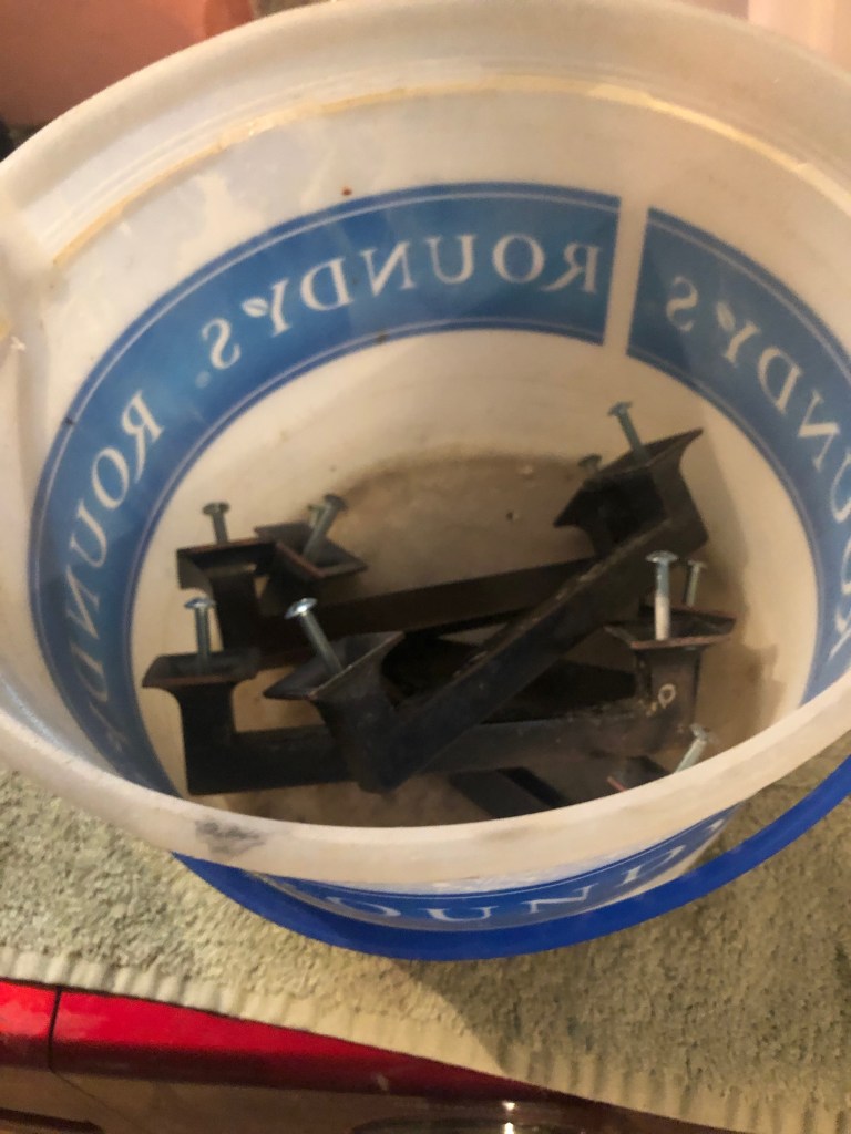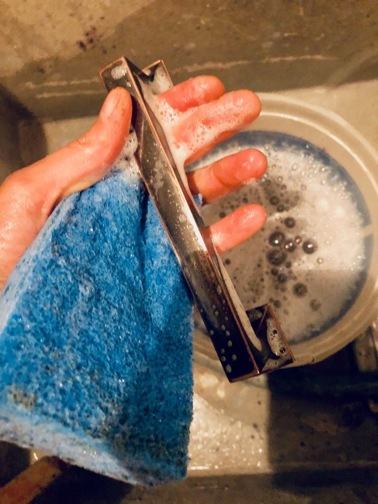 - Soak hardware in a bucket filled 1/4 the way with laundry detergent and the rest water.