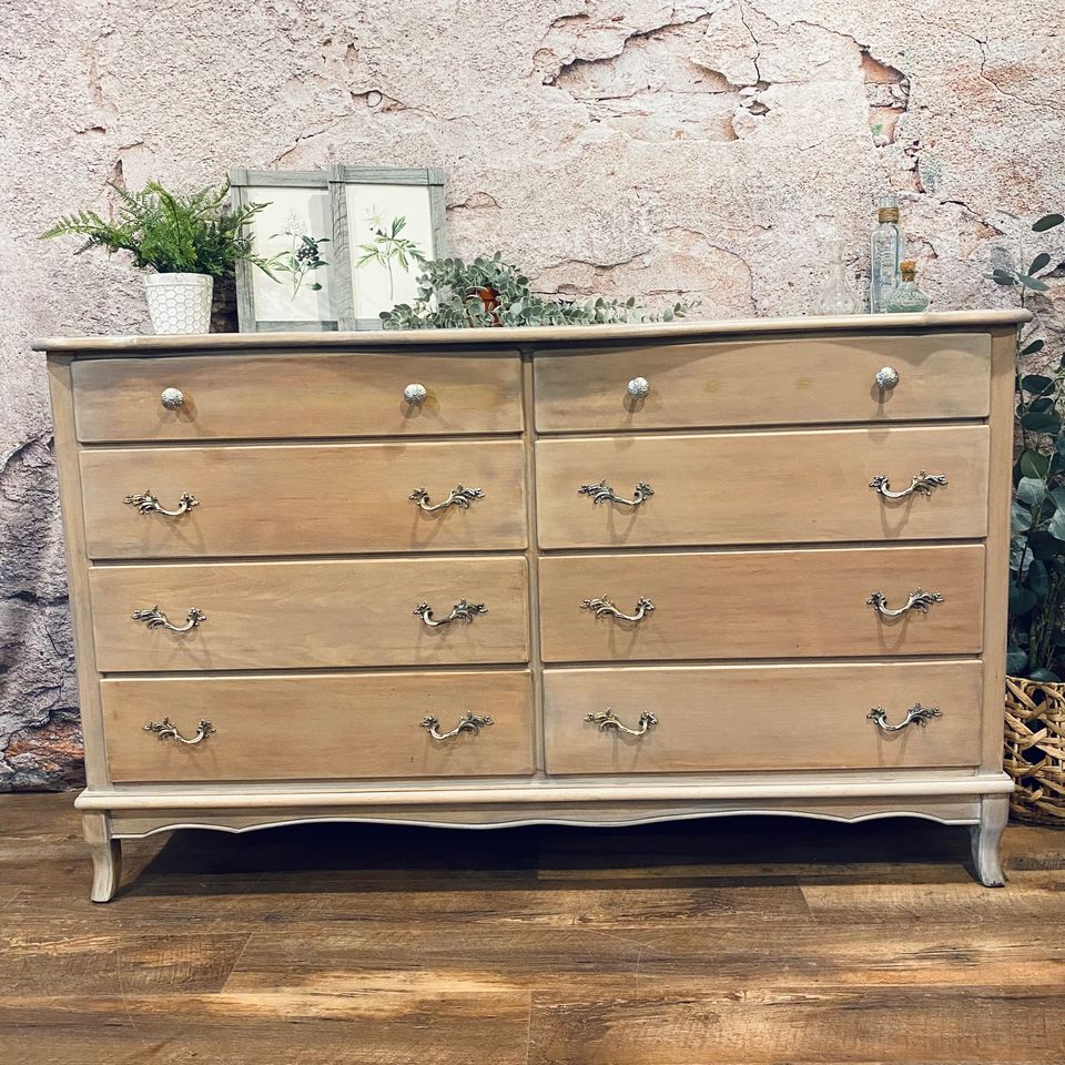 I kept the original hardware but there were a couple missing so I had the top two drawer have knobs that matched the style and period. And faite this French inspired dresser is done!