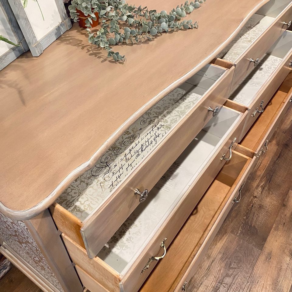 To keep with the French inspired dresser I choose this Prima furniture transfer for the sides I wanted a little pop but nothing that would impede from the piece itself.